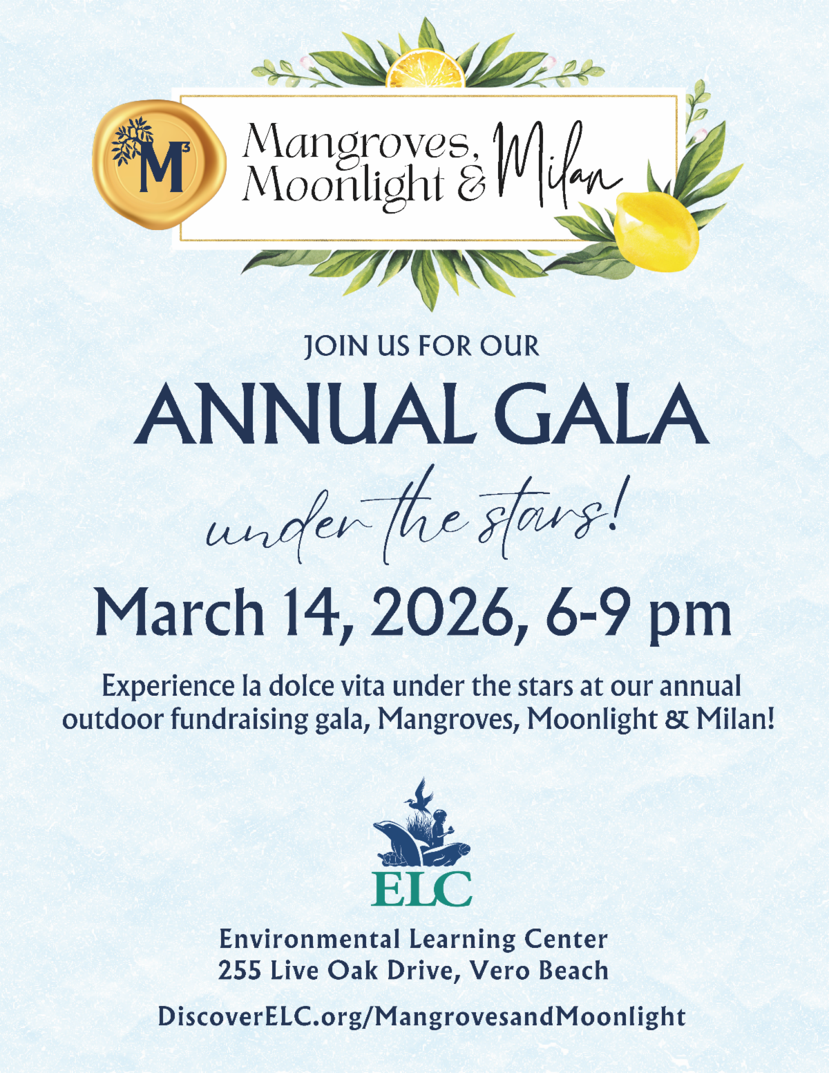 ENVIRONMENTAL LEARNING CENTER | MANGROVES, MOONLIGHT & MILAN ANNUAL GALA Back to News Items ENVIRONMENTAL LEARNING CENTER | MANGROVES, MOONLIGHT & MILAN ANNUAL GALA By Environmental Learning Center 3/6/2026 Images × Share × Email Facebook LinkedIn X Pinterest Powered By GrowthZone