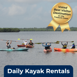 Adults and families have been fishing off our pontoon dock and enjoying some fantastic wildlife viewing. Our three-times-daily pontoon ecotours explore the Pelican Island Wildlife Refuge, the Sebastian Inlet, and the beautiful St. Sebastian River. So many folks are getting out on our kayaks and enjoying our art galleries and speaker events.