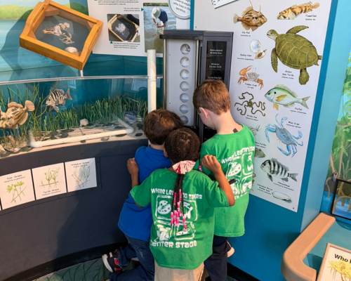 We love the energy on campus, with hundreds of people each day participating in our offerings. The school kids are here, dipping their nets in our teaching pond, seining off our immersion dock, canoeing through the mangrove tunnels and on the cove, and just generally having the time of their lives being adventurers and little scientists.