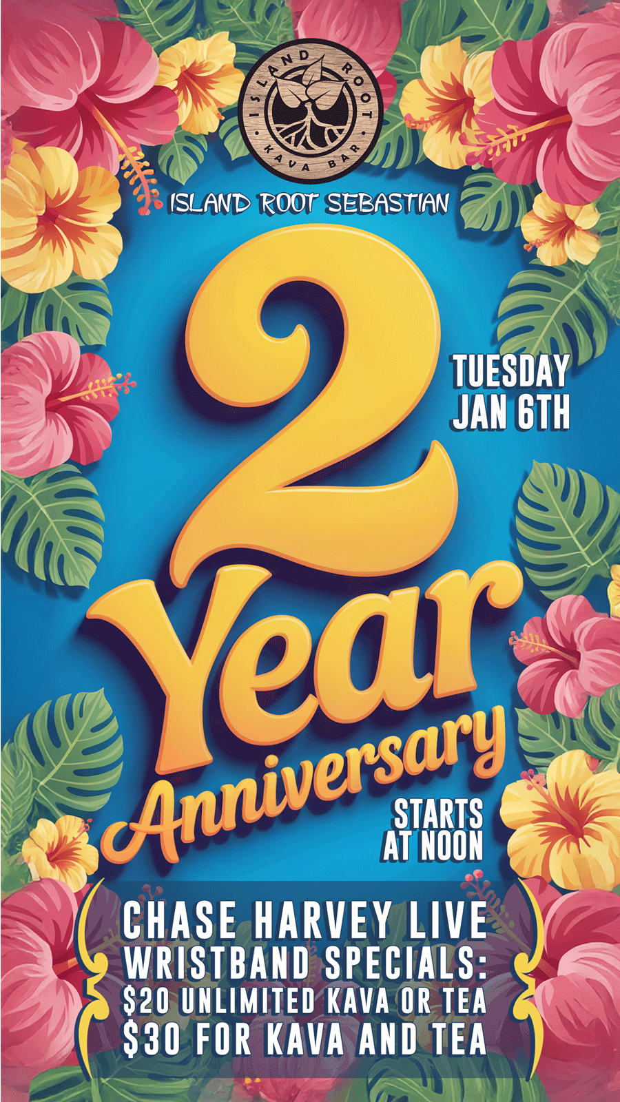 ISLAND ROOT SEBASTIAN CELEBRATES 2 YEARS! Back to News Items ISLAND ROOT SEBASTIAN CELEBRATES 2 YEARS! By Island Root Kava (33023) 12/29/2025 Images × Share × Email Facebook LinkedIn X Pinterest Powered By GrowthZone