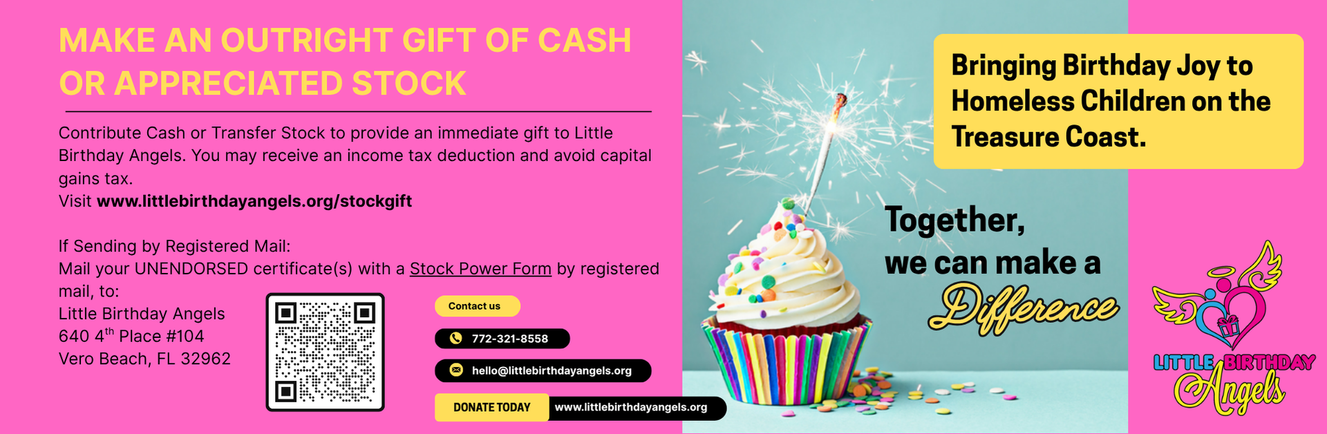 We’ve also expanded our outreach to include two new domestic violence shelters — SafeSpace Vero Beach and SafeSpace Stuart — ensuring that children fleeing unsafe situations still receive the joy and normalcy of a birthday celebration. Our partnerships now include: