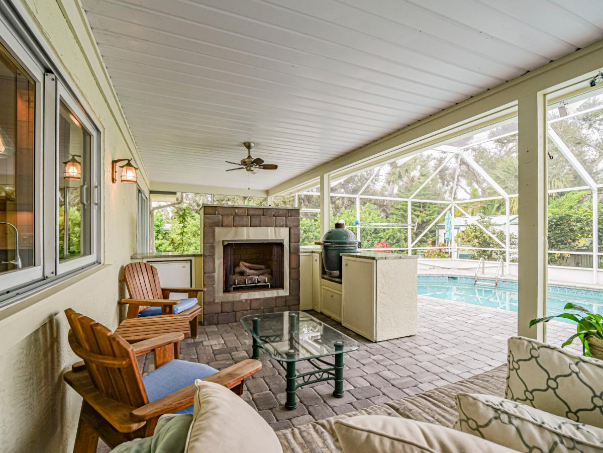 This spacious 2/2 split BR plan home is within minutes to beaches. The 2nd Bedroom is a 2nd Primary. Large living room and attached family room have sliders to patio. Completely remodeled kitchen and primary bath. This home has amazing entertaining flow. Enclosed lanai has outdoor kitchen/grill area, irrigated garden, potting area, and views of garden behind home. Tile floors. Newer metal roof and central air conditioning. Bonus of enclosed office room within garage with separate entrance. |
