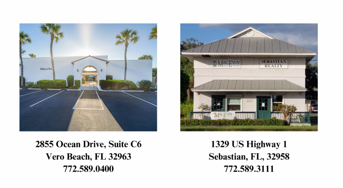 Mac Evoy Real Estate Co. 2855 Ocean Drive, Suite #C6 Vero Beach, FL 32963 844-Mac-Evoy (622-3869) Ext. 1 (772) 589-0400 macevoy.realestate@gmail.com www.macevoy.org