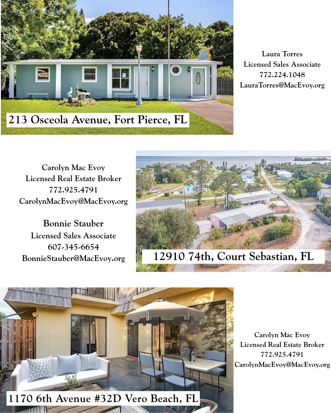 Carolyn Mac Evoy Licensed Real Estate Broker 772.925.4791 CarolynMacEvoy@MacEvoy.org |