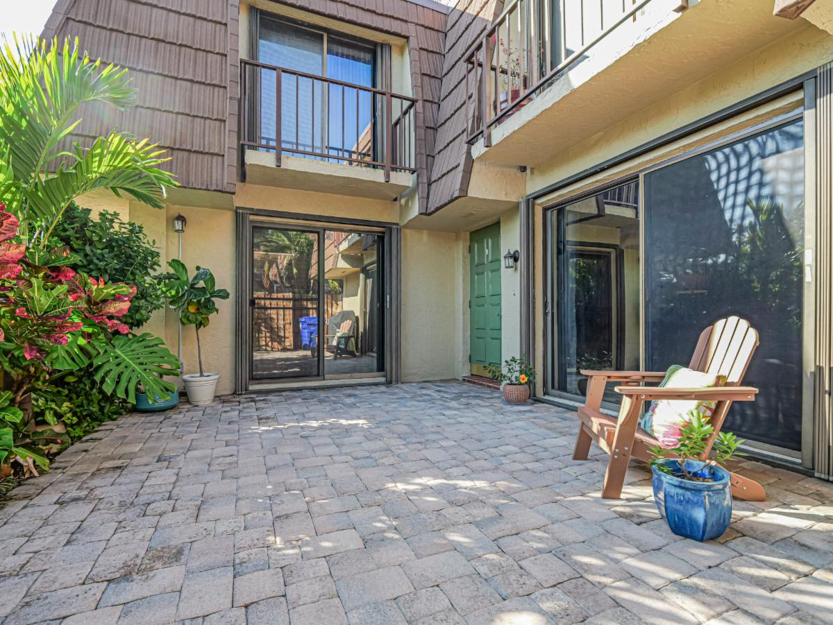 Spacious 2BR, 2.5BA villa with two levels of coastal living space. Large living room, dining room & updated kitchen. Primary bedroom is en suite w/full bath & balcony overlooking patio. First floor combined powder room/laundry gives this home a 3rd bath. Patio is fenced w/pavers & professionally landscaped, w/room for BBQ. |