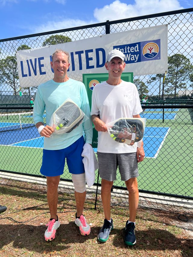 One of the day’s most memorable moments came from when Blake and Owen Bruckner faced off against their father, Nate Bruckner, and his partner Curtis Carpenter, creating a fun family rivalry on the courts. Nate is a staff member at United Way of Indian River County, while Curtis serves on the organization’s Board of Directors.